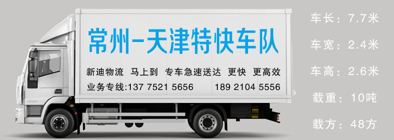 | 常州到天津貨車:7.7米長×2.4米寬×2.6米高 | 常州到天津7.7米貨車載重:10T /方數(shù):≈48方 | 常州到天津?qū)\囘\輸業(yè)務(wù):13775215656 |