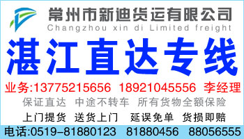 常州新迪物流提供常州到廣東湛江特快班車服務(wù),是目前常州物流市場上時效最快的門到門整車運(yùn)輸服務(wù),以優(yōu)異的價格,確保您的貨物安全、快速的送達(dá)目的地。同時,為了滿足客戶的多樣化需求,也靈活搭配回程車運(yùn)輸、順風(fēng)車拼車、零擔(dān)運(yùn)輸?shù)榷喾N運(yùn)輸形式,盡可能的在滿足客戶時效、安全性要求的同時,為客戶節(jié)省成本。